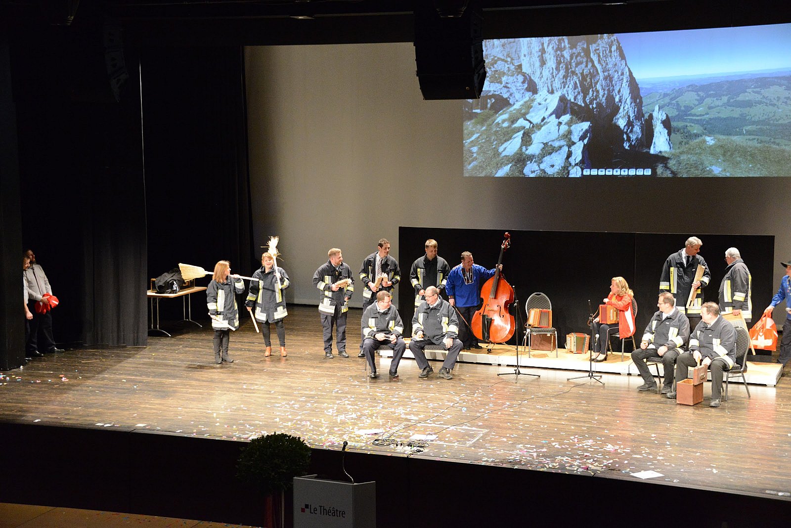 Aufgrund des diesjährigen Kommandowechsels wurden die Feuerwehr-Eingeteilten mit Partner/innen und die geladenen Gäste mit einem Apéro im Foyer des Le Théâtre willkommen geheissen.