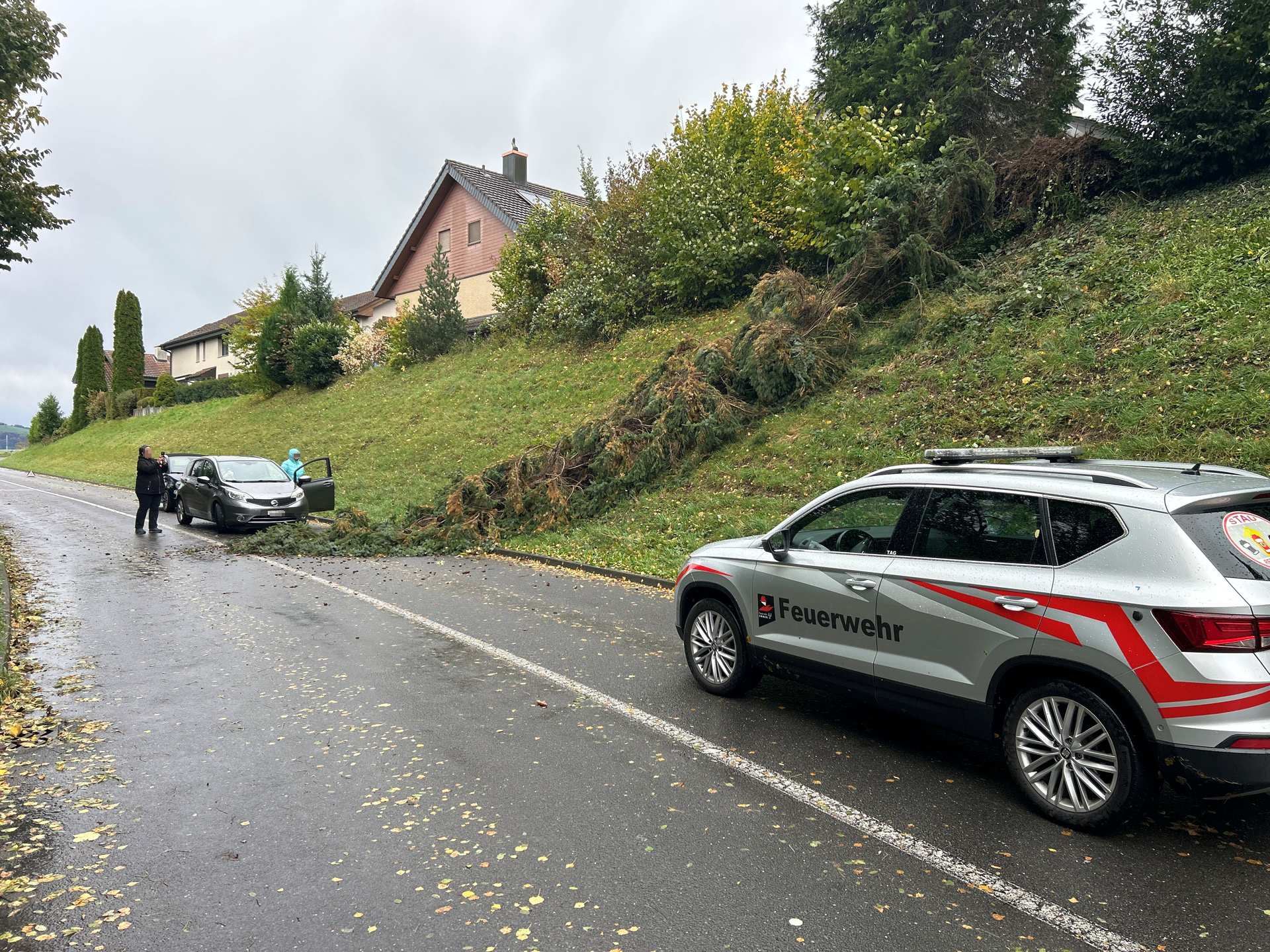 Privatperson hat Gefahrenstelle mit Pannendreicke gesichert und ein Gartenbauunternehmen aufgeboten.