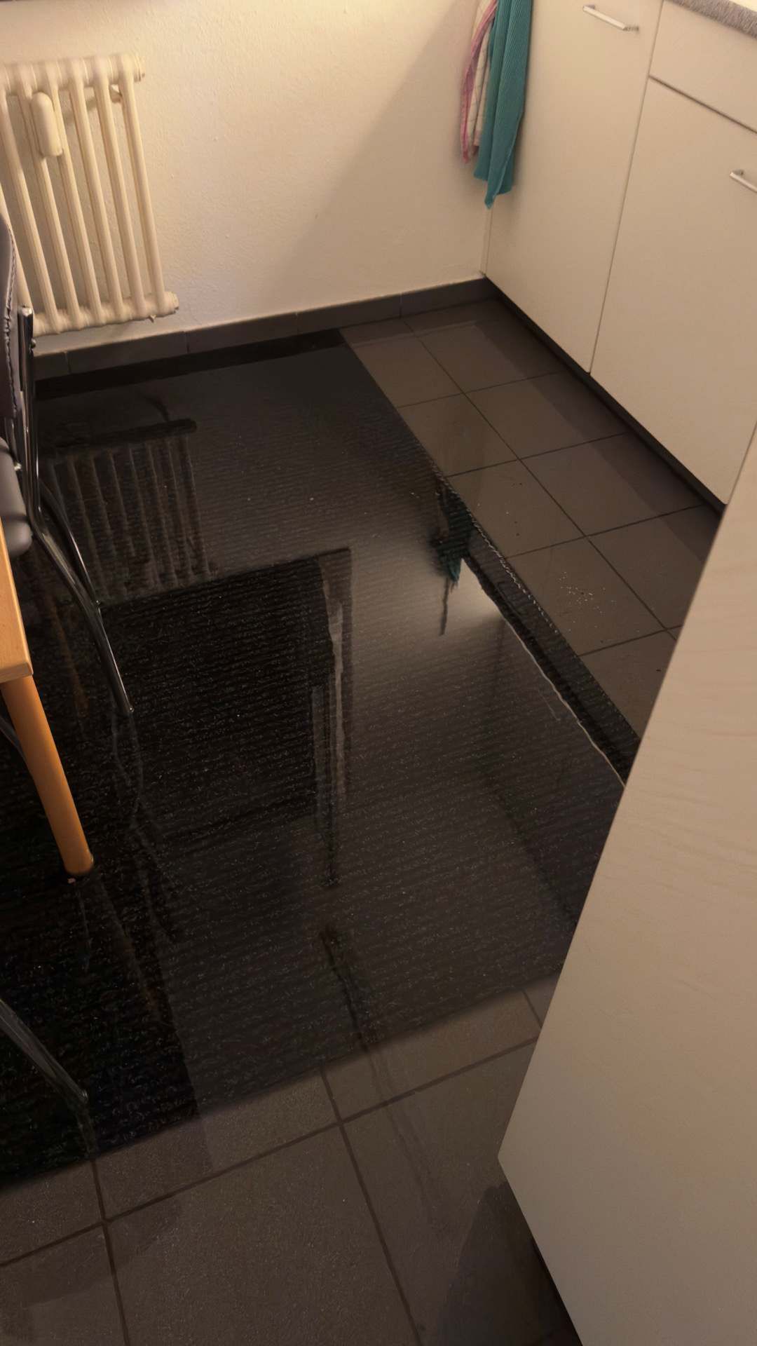 Die Badewanne ist überlaufen und hat die ein grossteil der Wohnfläche mit 1-2cm Wasser gefüllt. In der darunterliegenden Wohnung tropfte es stark von der Decke.