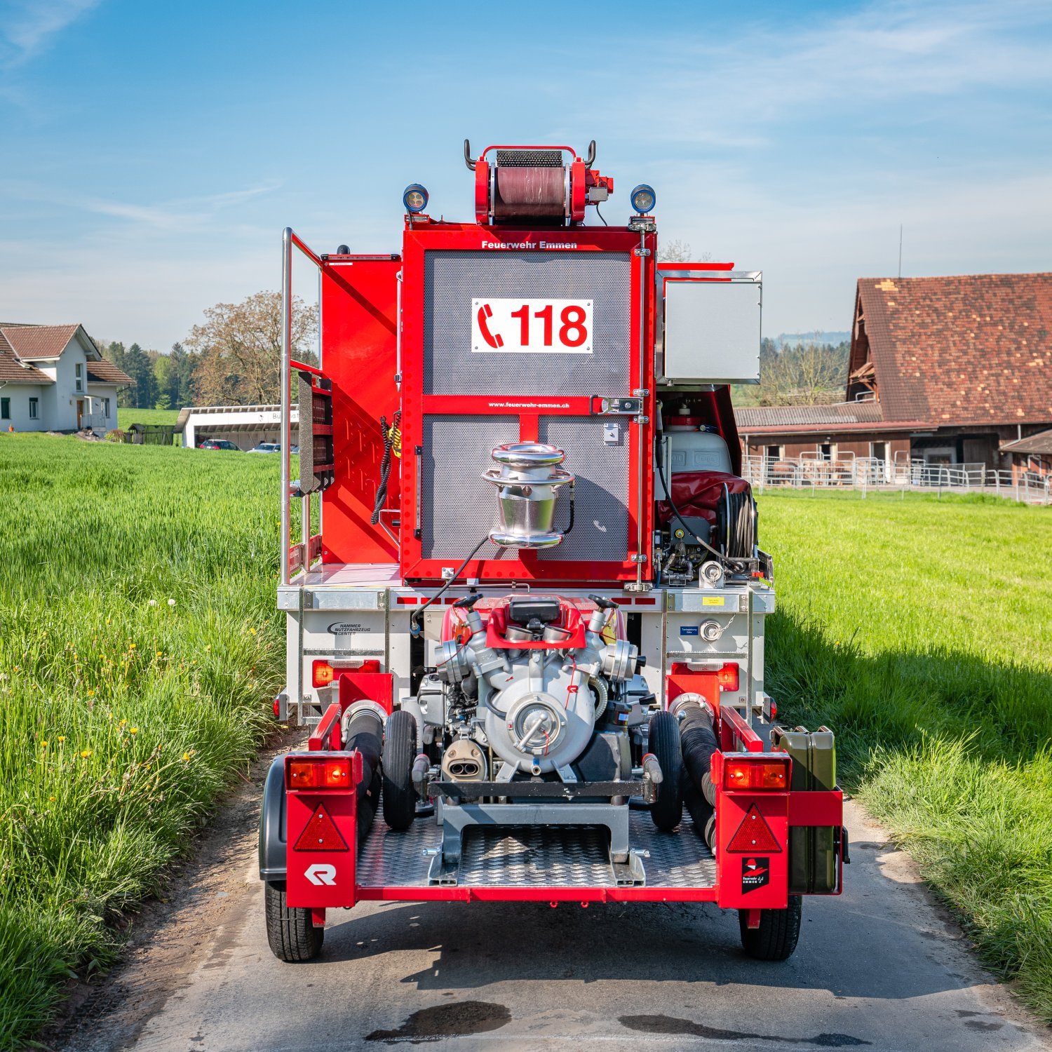 Wassertransport1500 m Schlauch 75 mm,Motorspritze Rosenbauer Fox IIIAutom. SchlauchaufnahmevorrichtungSchlauchwaschanlageMotorspritze mit Absenkautomatik