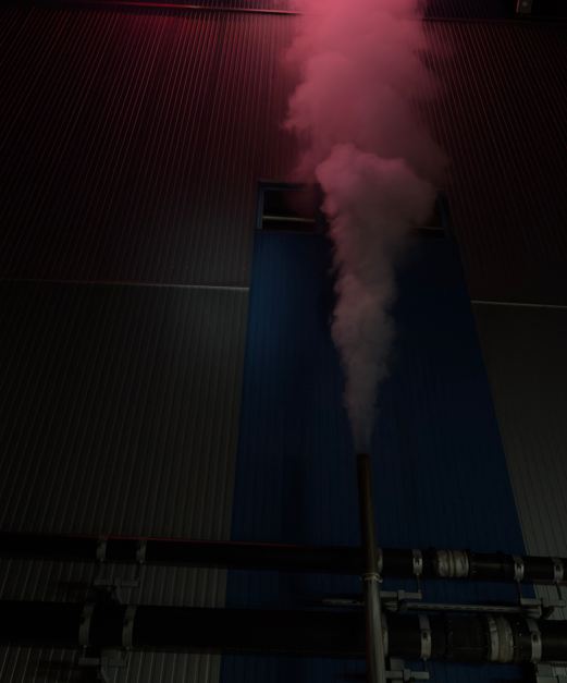 Kein Einsatz notwendig. Optische Täuschung aufgrund eines prozessgesteuerten Dampfaustrittes.