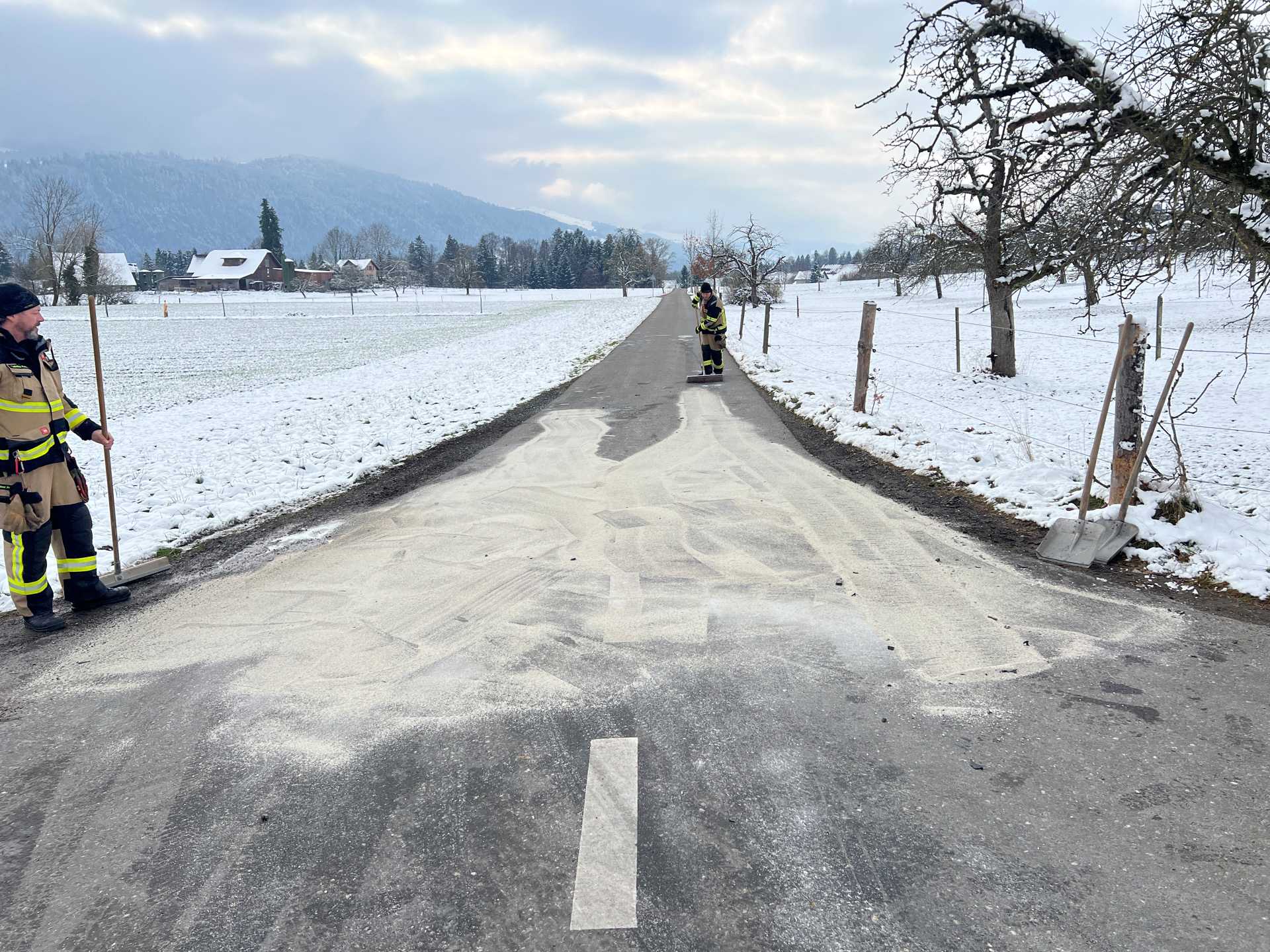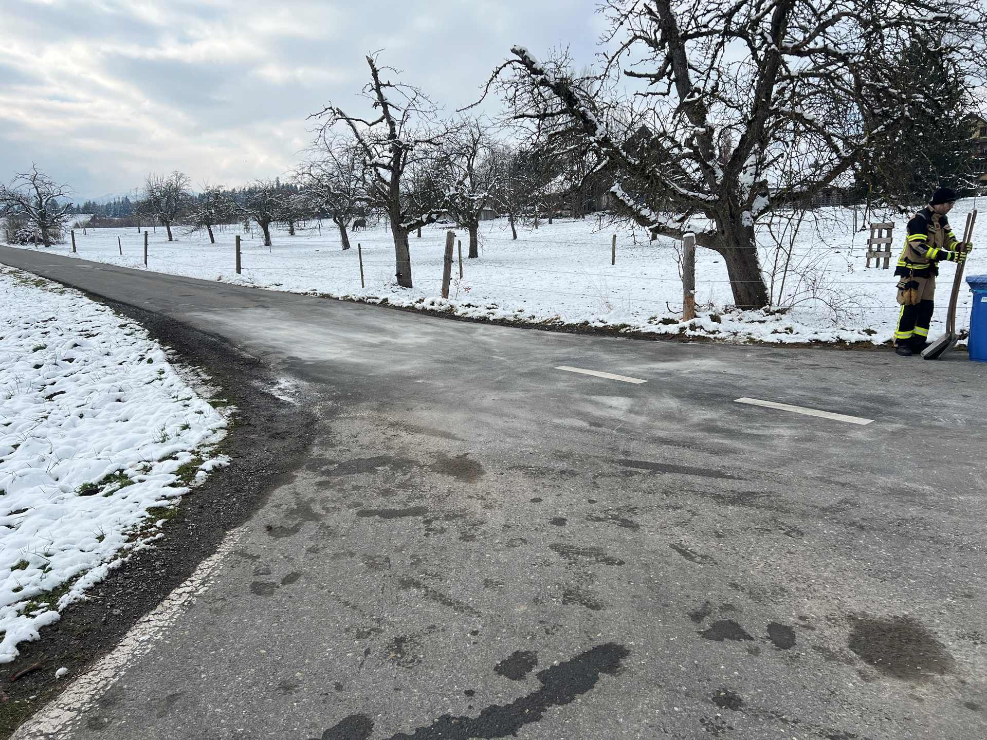 Reinigung der Fahrbahn wegen ausgelaufenem Öl